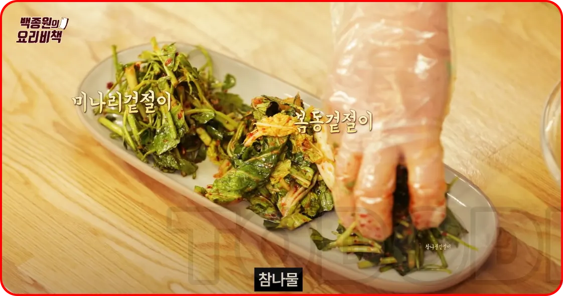 백종원 님은 봄동과 미나리, 참나물을 무쳐주었어요. 만능 겉절이 양념장만 있으면 어느 봄나물이 있어도 무쳐 먹을 수 있으니 일석 이조랍니다. 살도 안찌고 건강에도 좋은 봄동겉절이 황금레시피 겨울 가기전에 따라해 보시거나 고기와도 잘어울리는 겉절이로 감칠맛을 느껴보세요.